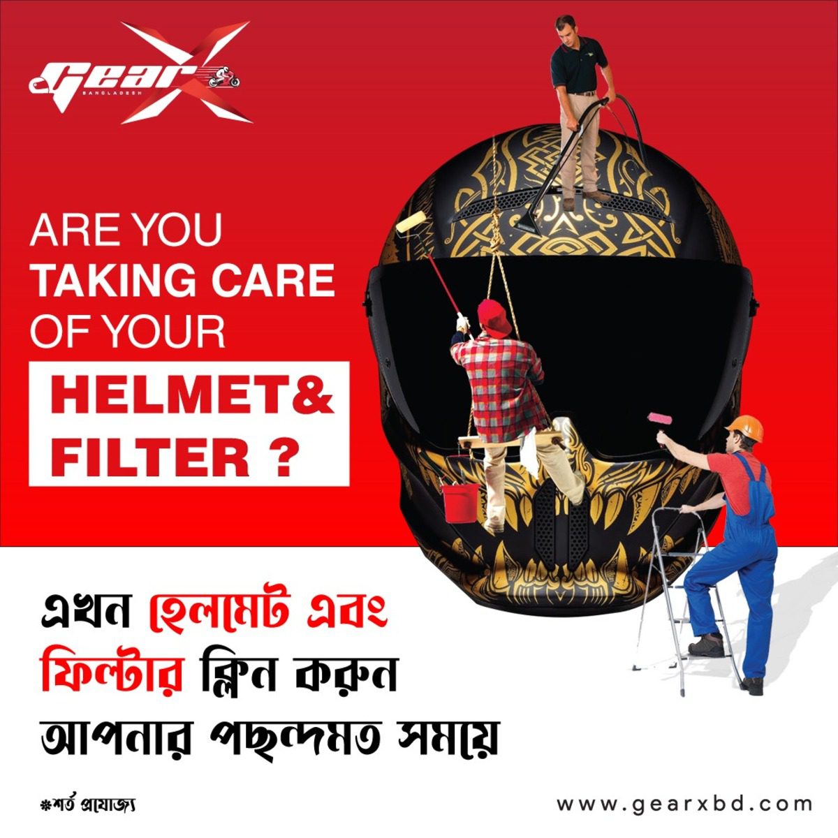 GearX Bangladesh, the market leader in premium helmet and accessories segment launches another new benefit called “Scheduled Helmet & BMC Air Filter Cleaning for all their customers.
